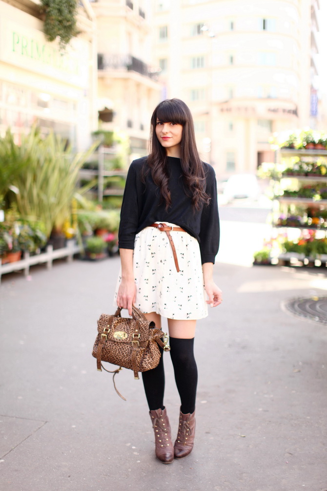 Une tenue ultra cool de The Cherry Blossom Girl okay elle ne date pas de cette semaine Jupe à imprimé rétro + chaussettes jambières !