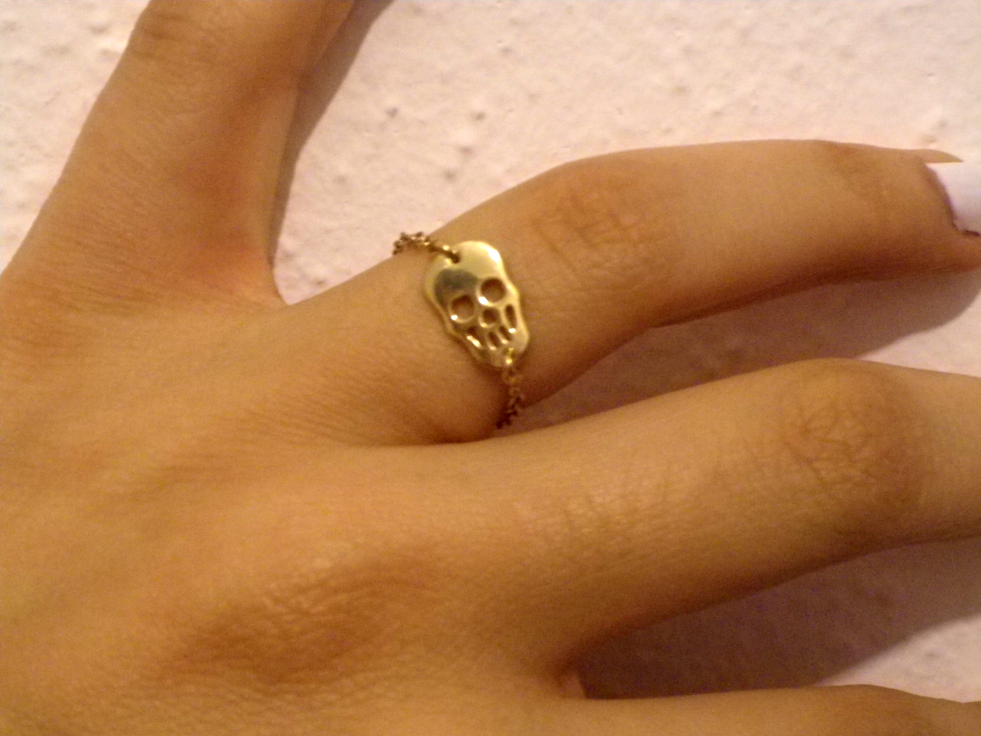 Une bague chaîne plaqué or avec une petite tête de mort trop craquante ! J’ai pris une taille 52.