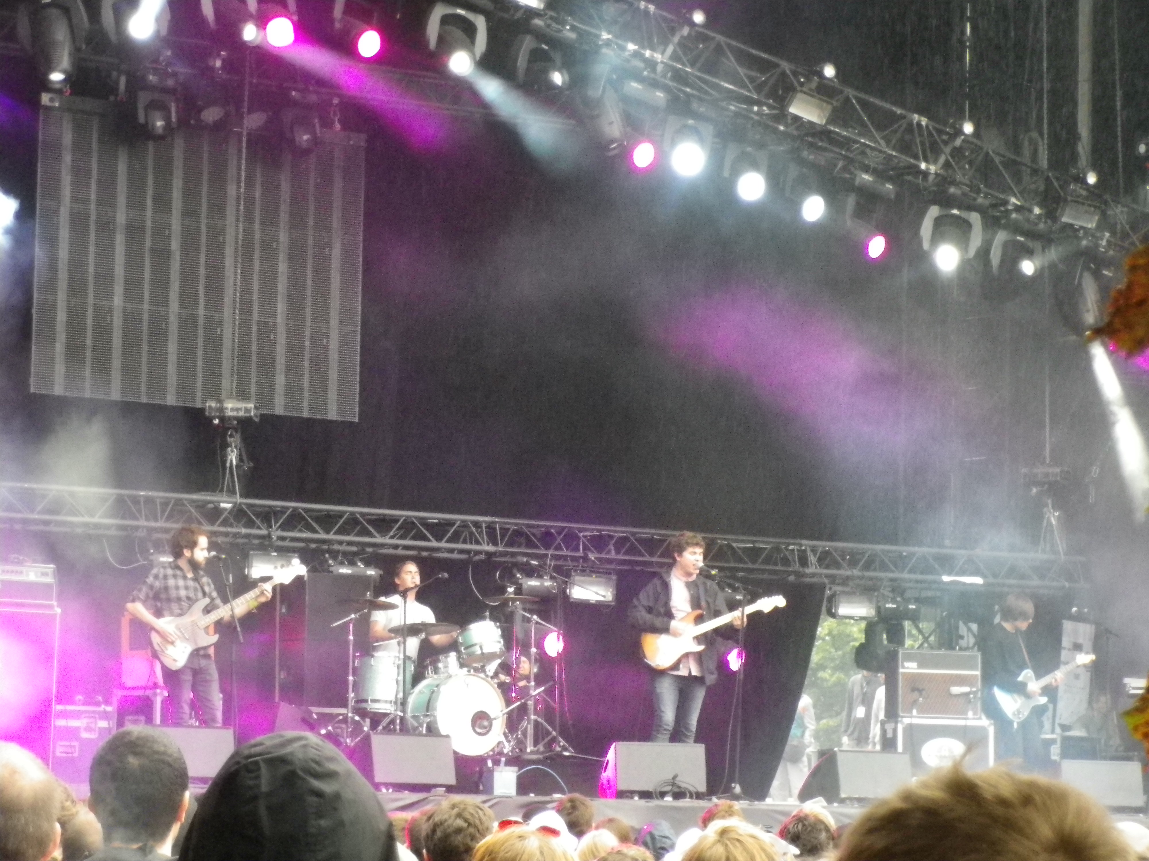 Au tour des Surfer blood de jouer, concert que j’ai vu quasiment en intégralité sous la pluie. Cela fait du bien aux oreilles de retrouvé du nouveau son aux influences beach rock ! Surtout avec un groupe pas prise de tête, chanteur munis de bottes et k-way.