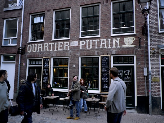 Nous avons donc parcouru le quartier rouge qui, malgré les fameuses vitrines, possède la plus ancienne église d’Amsterdam, l’Oude Kerk qui est entourée de petites maisonnettes accolées tout autour. Mais vous y trouverez aussi de très bons restaurants et notamment ce Thaï, le Bird, que vous ne pouvez rater car il y a toujours 20 minutes d’attente et une file jusque sur le trottoir pour avoir une table.