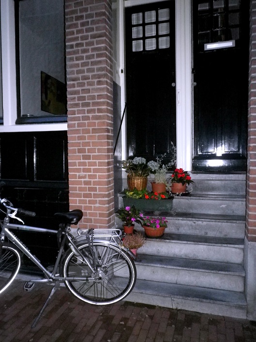Une petite ballade à l’ouest de la gare en fin de soirée nous a emmenées dans un quartier très tranquille – étant un quartier pourtant hyper centré – et beaucoup plus résidentiel. J’aime beaucoup ces petites maisons en briques repeintes en noir, et ces paliers arborant quasiment toujours des plantes en pot, des fleurs et bien souvent un banc. C’était un vrai plaisir de tourner à chaque coin de rue et découvrir les canaux.