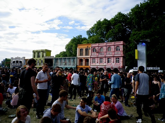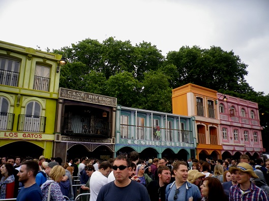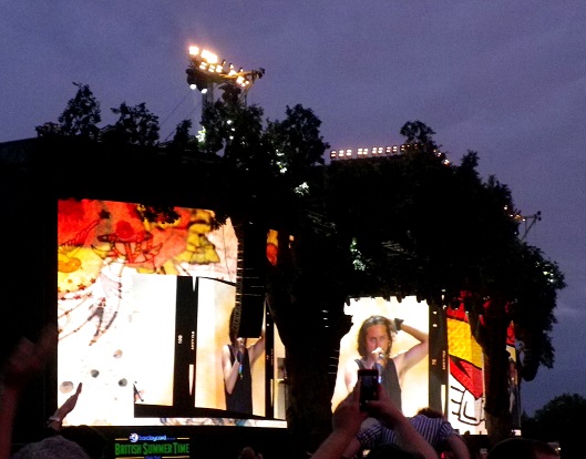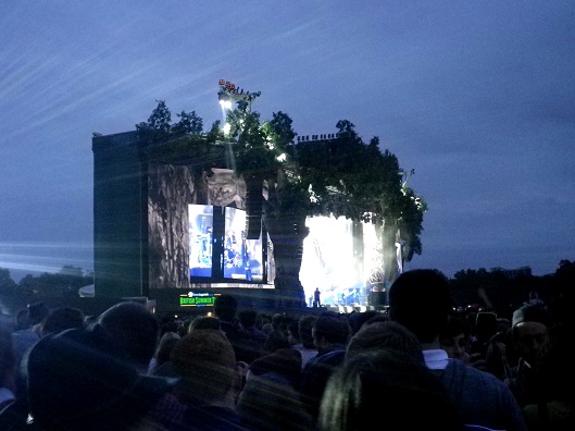 Une fois enfin entrés dans Hyde Park, nous faisons le tour du propriétaire, le temps de découvrir les différents stands. La météo s’étant calmée, nous pouvons profiter du moment présent. L’atmosphère qui règne pendant le festival anglais est totalement différente de ce que j’ai pu voir en France. Beaucoup de monde au mètre carré, pas de gobelets consigne, les verres vides sont jetés par terre, c’est le côté non écologique qui est le mauvais point. La bière en « pint » – largement meilleure que ce que l’on trouve en France – coule à flots (abus alcool dangereux pour la santé) et l’ambiance est très festive et chaleureuse. Rapidement c’est le moment des Pogues: grosse ambiance avec cette musique irlandaise, tout le monde danse, on se croirait à la Saint Patrick. Une dizaine de musiciens sur scène, un chanteur presque cadavérique mais qui tient jusqu’au bout avec un public au top.