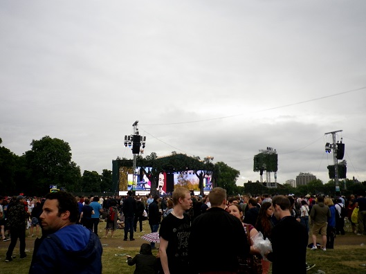 Le British Summer Time regroupe des évènements à Hyde Park, dont de nombreux concerts, pendant la période estivale à Londres. Les groupes se succèdent sur une gigantesque scène décorée de faux arbres et de feuillages. Le spectacle démarrait vers 13h avec différents groupes: The Enemy, Maximo Park et Spiritualized. Nous avons débarqué vers 16h pour récupérer nos tickets sous une légère pluie fine et froide et un ciel gris assez menaçant.