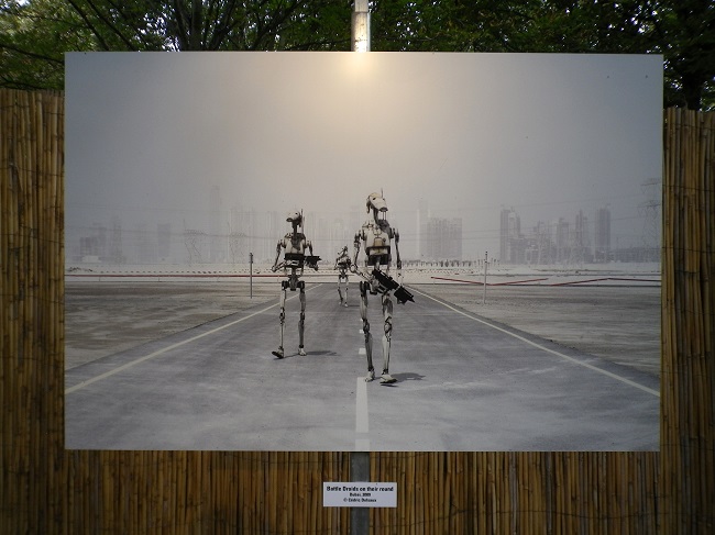 Il fût ensuite temps de faire le tour des expositions avec le traditionnel RockArt’ où des artistes créent des posters pour les groupes du festival, déplacé sur l’espace jusqu’alors inexploité du parc entre la Cascade et la Pression Live. En 6 années de Rock en Seine, j’avoue mon coup de cœur à l’exposition photos Dark Lens de Cédric Delsaux, où l’artiste a intégré des personnages de la saga Star Wars dans des lieux réels, comme si l’air de rien nous pourrions croiser C3PO ou un clone près de chez nous. J’ai trouvé l’idée vraiment brillante et l’expo très originale. Totalement le genre de reproduction que j’aimerais me procurer.