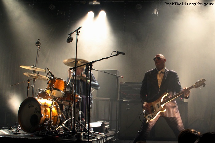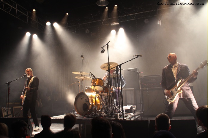 Après l’ouverture de la soirée par Last Train (article ici), c’est Triggerfinger qui a repris les rênes. Une entrée fracassante pour le groupe belge, avec notamment le batteur debout sur sa batterie. Très théâtral, une expression entre AC DC et The Hives. Les trois musiciens placés sur une même ligne, la batterie pour une fois mise en avant sur une estrade bien au centre, et des instruments magnifiques. Un batteur au regard et aux attitudes flippantes, un bassiste à l’allure imposante dans son costume rayé très mafia italienne et un chanteur très classe au brushing parfait. Triggerfinger en live, c’est du rock’n roll pur, une énergie débordante et un enchaînement sans faille. Une ligne de basse puissante, un batteur qui tape fort et de manière précise, chant et guitare maîtrisés. L’ambiance est au summum et ne faiblit pas avec le solo de batterie de 20 min, les deux autres musiciens actionnant les spots de lumière blanche. Une setlist bien rodée, dynamique et une étonnante et très sensible reprise acoustique de I follow rivers de Lykke Li. Une démonstration de force, de rock et de talent pour le groupe. A voir absolument.